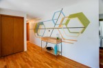 The mural is a Brandon Scalf original, using colors from throughout the house.