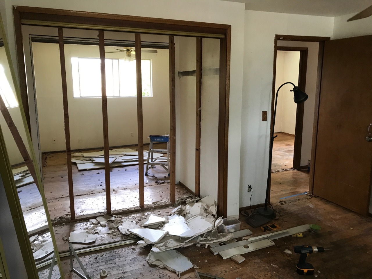 We removed the wall between the two closets between bedrooms to make a large step-in closet