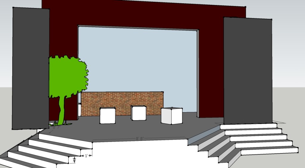 This is one of my favorites! I had so much fun designing this one, and the cast and energy was just amazing. The plot for this is non-linear, just a series of vignettes, so I also deconstructed the set. Obviously I pulled inspiration directly from the comic strip. The orchestra pit up upstage, behind the actors. I created these over-sized classic theater cubes to act as various props and locations: the lunch bench, the sofa, brick wall, and iconic stripes.